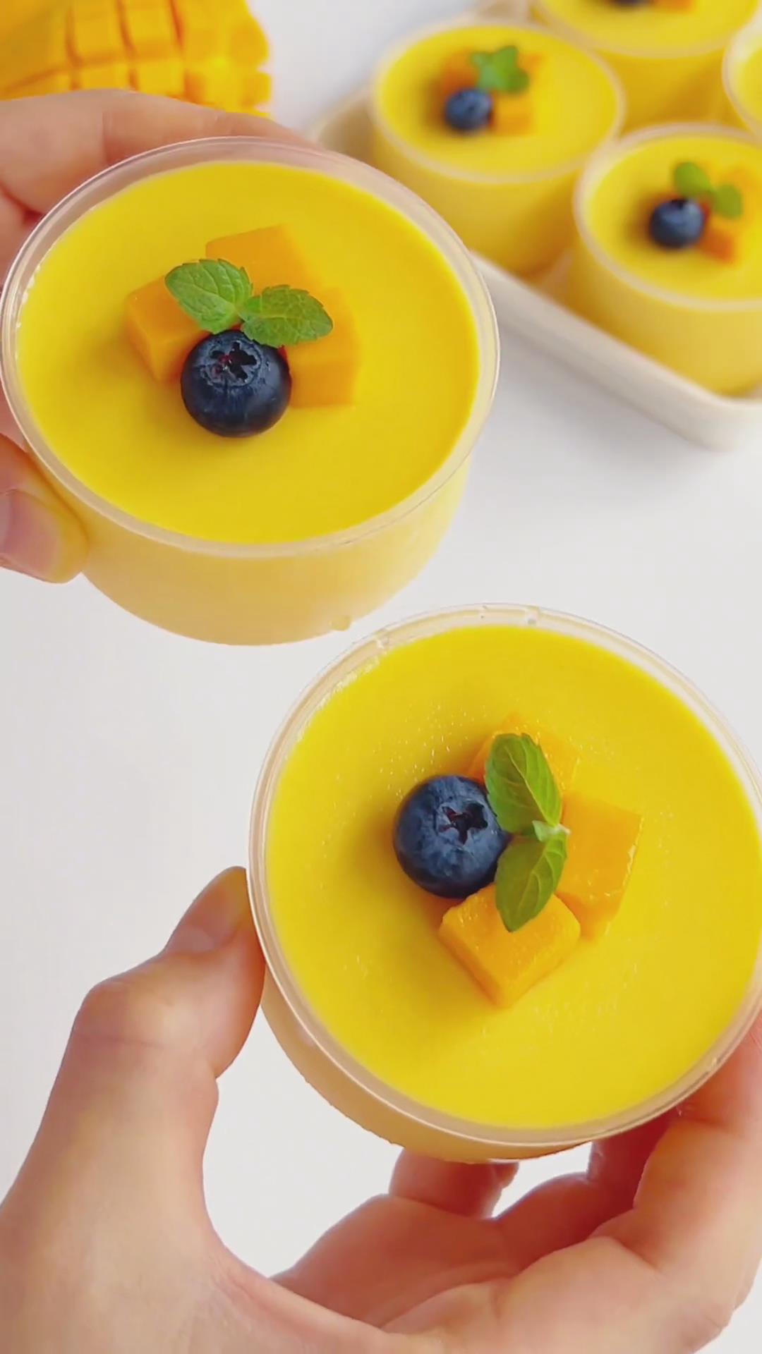 - Cover with plastic wrap and refrigerate for at least 4 hours, or freeze for 1 hour for a quicker set. Top with mango cubes and blueberries.