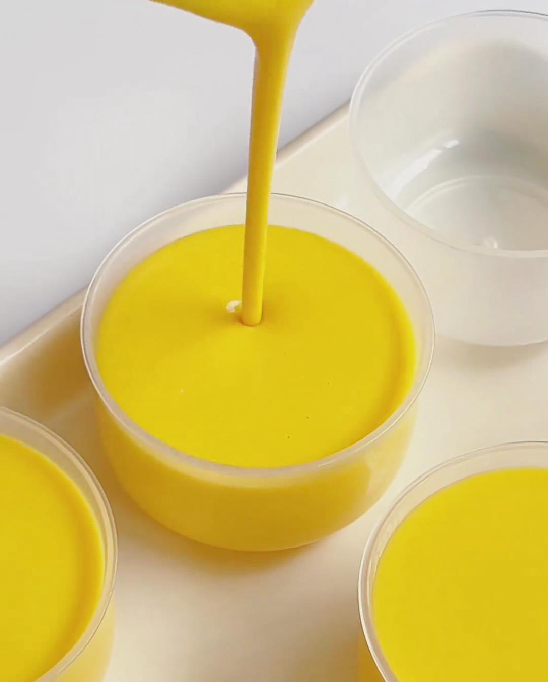 - Pour the mixture into your desired molds (glasses, pudding cups, etc.) until about 80% full. Gently tap to release bubbles.